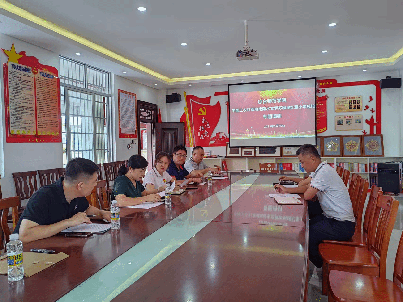 在调研会上,戴院长以琼台历史,红色印记为线索,向苏维埃红军小学总校全体教师们作了精彩的专题报告。同时介绍了太阳成集团122ccvip对思想政治教育专业师范教师培养的具体规划,明确了对海南基础教育师资需求的着力方向。双方还就未来师资培养、专业教学指导、实习基地建设、创新合作模式等方面进行了深入探讨和交流。