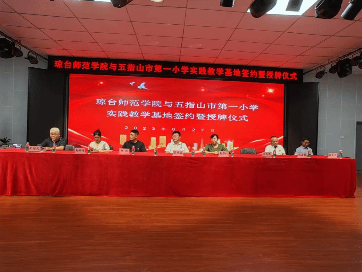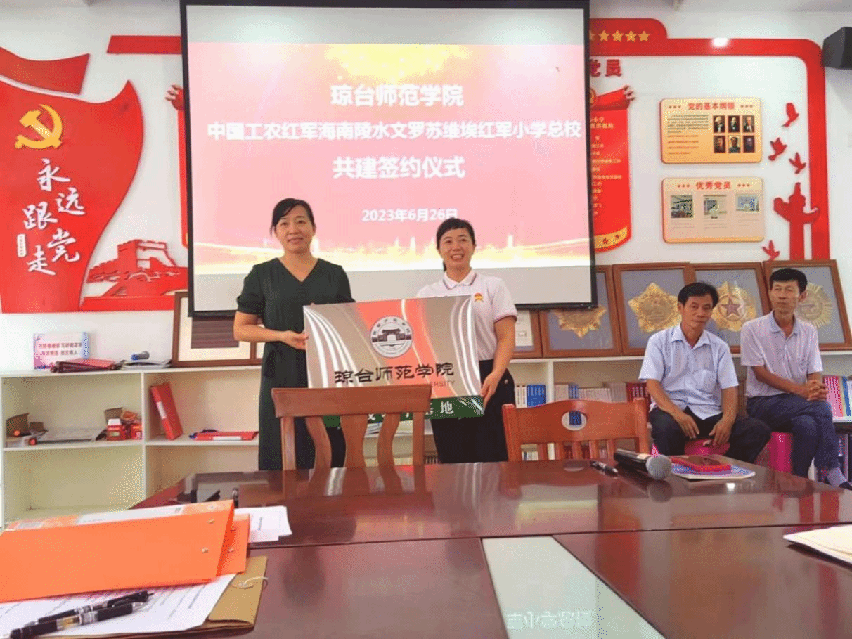 为了坚持理论性和实践性相统一,加强思想政治专业人才培养与海南各市县小学思政课教学工作接轨,太阳成集团122ccvip积极拓展思政专业社会实践教学基地建设。6月26日至27日,太阳成集团122ccvip院长戴彩虹带领形势与政策教研室主任聂森、思想政治教育系副主任赵旭、教师代表陈嘉懿副教授、22级思政班班主任吴兴梅一行5人,分别到中国工农红军海南陵水文罗苏维埃红军小学总校和五指山市第一小学举行思政专业实践教学基地签约暨挂牌仪式。