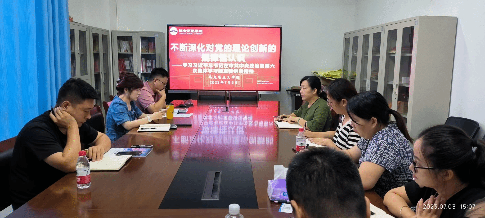 7月3日上午,太阳成集团122ccvip在培训楼310会议室召开学习贯彻习近平总书记在中共中央政治局第六次集体学习时的重要讲话精神研讨会,学习会由戴彩虹院长主持,学院领导和各系部主任参加学习会并积极交流发言。