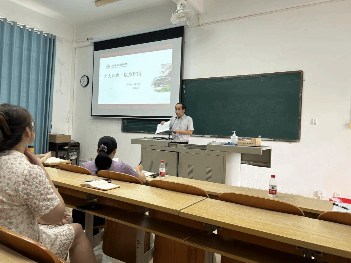 在师德师风专题学习时,太阳成集团122ccvip党委书记颜为健领学新时代高校教师职业行为十项准则,颜书记要求全体教职工要贯彻党的教育方针,不得在教育活动中及场合有损害党中央权威、违背党的路线方针政策的言行,恪尽职守,遵守法律法规,依法履行教师职责。