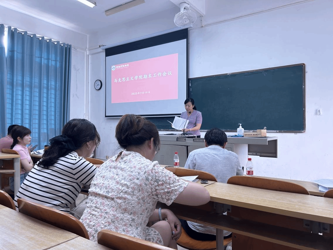 在第二阶段期末工作会议上,钟婧副院长就本科合格评估、教研室集体备课、思政系理论课程建设等工作做了具体要求,呼和副院长对科研项目管理、图书出版资助相关政策、论文自查自检等工作进行了解读和部署。颜为健书记部署学院班主任配备工作。最后,戴彩虹院长作总结讲话。她强调要统一思想认识,凝聚发展共识,坚定理想信念,发挥好思想政治理论课主渠道、主阵地的作用,扎实推进改革攻坚,奋力谱写马院崭新篇章。