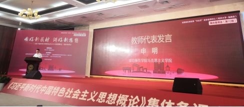 会上,张磊、颜晓峰、辛向阳、陈大文等四位教材编写组专家从新教材的编写原则、基本构架、使用建议以及相关具体专题讲解等方面为参会教师做了高屋建瓴的辅导,为我院教师用好新教材、讲好新思想课程提供了宝贵的学习机会。我院教师申明作为教师代表从学教材、学原著、学同行、抓重点、讲故事、重实践等方面就如何讲好新思想课程在会上做了交流发言。
