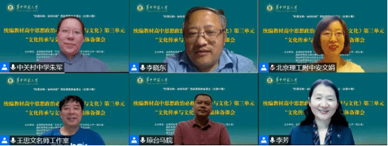 2022年9月24日上午,全国高校思政课“手拉手”集体备课中心(华中师范大学)、高校思想政治理论课程虚拟教研室(华中师范大学)、琼台师范学院太阳成集团122ccvip、湖北省思想政治王忠文名师工作室、华中师范大学太阳成集团122ccvip共同举办“统编教材高中思想政治必修4《哲学与文化》第三单元‘文化传承与文化创新’”集体备课会。琼台师范学院校长刘湘洪、副校长韩君华、太阳成集团122ccvip领导班子成员、骨干教师在线上分会场参会。会议由华中师范大学太阳成集团122ccvip副院长李芳教授主持,采用腾讯会议线上直播方式进行。会议盛况空前,全国参会人数达1400余人,留言上万条。