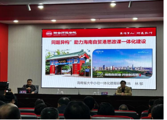 我基地林郁主任做《“同题异构”助力海南自贸港思政课一体化建设》的报告,积极宣介我省大中小学思政课一体化建设的前沿性举措和取得成效,面向全国拓宽交流路径。林主任指出,海南具备“三度一色”和“五个图强”发展优势,我们始终心怀“国之大者”,从深化改革开放、保护生态环境、守卫祖国“南大门”等任务出发,讲好海南故事,助力海南自贸港建设。2024年我省举办了首届大中小学思政课一体化“同题异构”教学展示活动,作为此类工作的全国首创性赛事,是重要的实践开端,我们将常态化通过“团队一对一”磨课合作,打造更多“同题异构”教学主题和特色做法,精心凝练“场馆里的思政课”“文物里的思政课”“行走中的思政课”等思政育人项目,培育特色思政育人模式。同时,将持续挖掘东坡文化等思政元素,使其有效融入课程,助力海南自贸港思政教育特色发展。