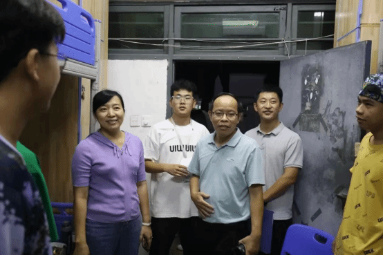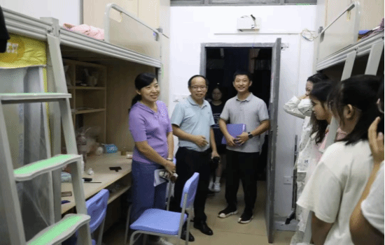 2023年9月10日晚,我院党委书记颜为健、院长戴彩虹一行走访新生宿舍,亲切慰问我院2023级本科生,辅导员赵乐然、教师申明、新生班助陪同走访进行慰问工作。