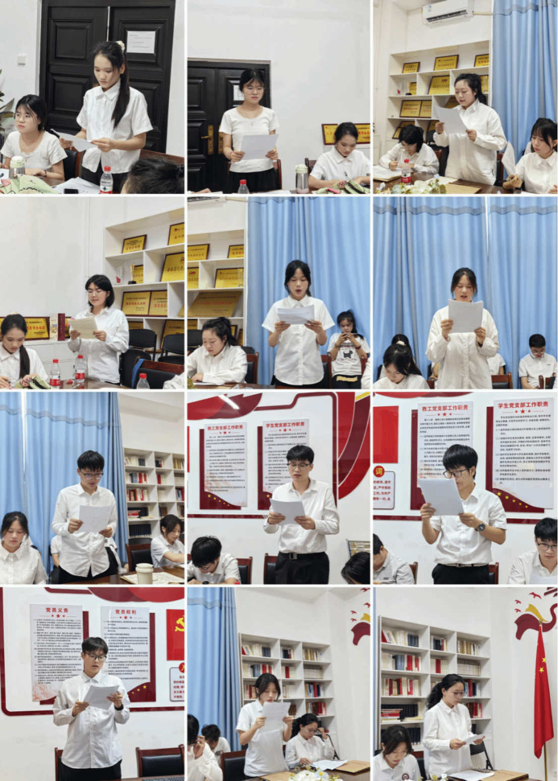 会议开始,全体师生合唱《义勇军进行曲》,赵乐然同志宣读本期发展对象名单,由发展对象逐一汇报对党的认识,入党动机,本人履历,家庭成员和主要社会关系情况以及其他需要向党组织说明的问题入党介绍人对他们的培养和教育考察情况进行了介绍并表态
