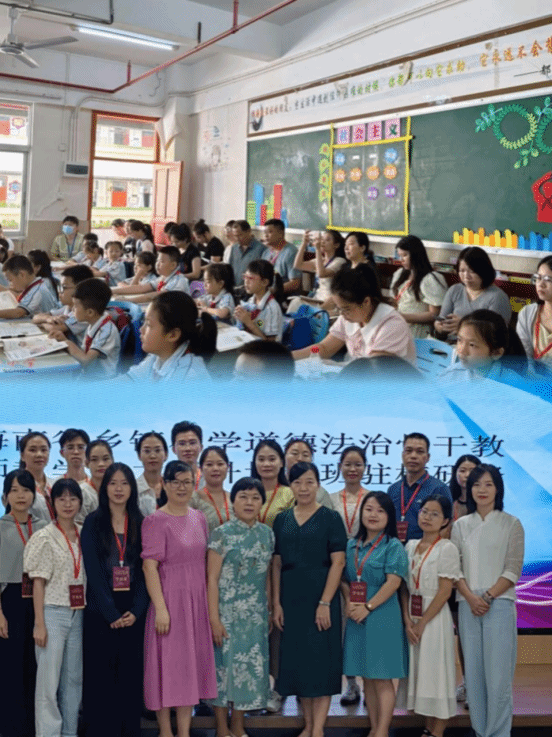 为进一步了解我省小学道德与法治课程的教学情况更好提升我院思想政治教育专业人才培养质量,且发挥马院服务海南基础教育的作用,在马院承办的2023年海南省乡镇小学道德与法治骨干教师教学能力提升培训班赴小学跟岗研修期间,马克思主义学院院长戴彩虹带领思想政治教育系黄丽燕主任、崔元君老师于9月20日深入一线,走进小学道德法治教学、教研课堂,在课堂上看、在课堂上听,与一线的老师一起研讨交流。