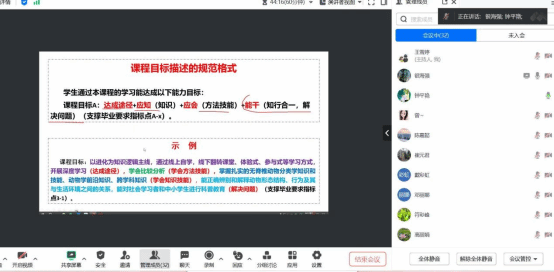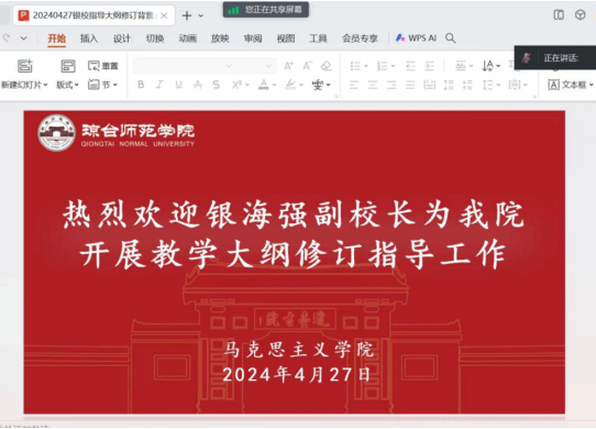 为进一步落实立德树人根本任务,做好本科教学合格评估工作迎评准备,全面落实OBE人才培养理念,进一步规范教学标准,保证教学质量。2024年4月27日上午,马克思主义学院召开线上会议,邀请银海强副校长对我院各课程教学大纲修订工作进行指导。马院领导班子成员及全体教师参会,会议由教学副院长钟婧主持。