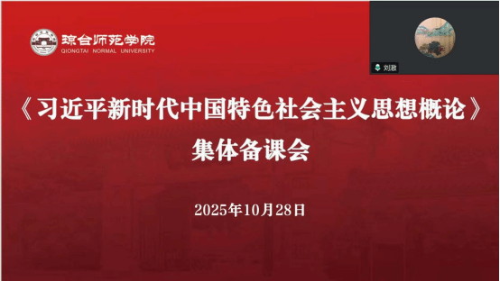 10月28日,我院“习近平新时代中国特色社会主义思想概论”课程任课教师齐聚云端,进行“习近平新时代中国特色社会主义思想概论”课程第二次集体备课会。副院长刘澈参加集体备课会,曾虹老师主持会议。