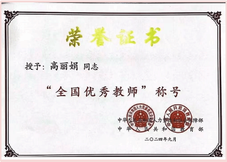 高丽娟老师获得“全国优秀教师”荣誉称号