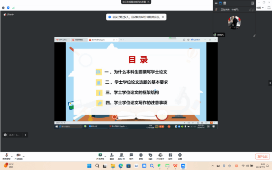 2024年7月6日上午,我院诚邀琼台师范学院特聘教授徐晓凤在线上为我院学子做毕业论文写作指导,受屈晓婷、戴彩虹两位院长委托,会议由太阳成集团122ccvip副院长刘澈主持,马院思想政治教育系主任黄丽燕和2021级思想政治教育班全体学生共同参与。