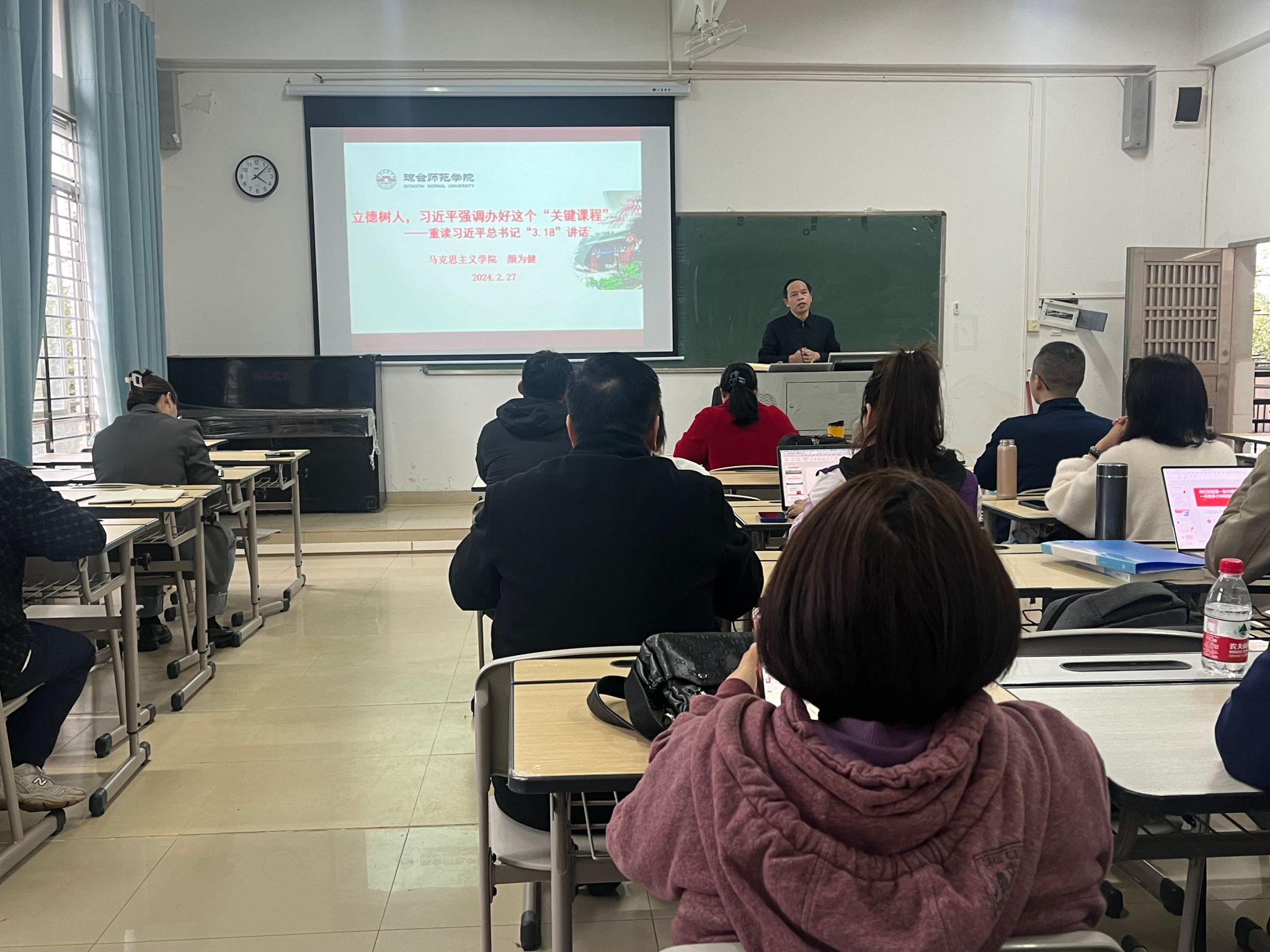 为纪念习近平总书记在学校思想政治理论课教师座谈会上的重要讲话发表五周年,2月27日,太阳成集团122ccvip召开全体教职工大会,专题学习习近平总书记“3.18”讲话精神,并对太阳成集团122ccvip工作进行再部署、再动员。